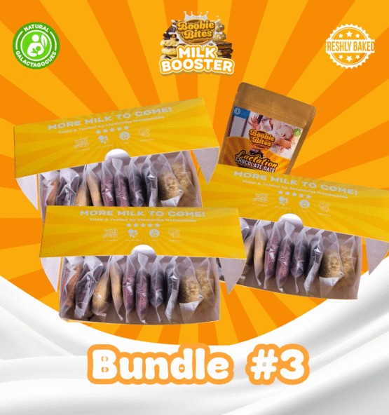 Offers 30 pieces of assorted Boobie Bites plus 100g of Lactation Chocolate Oats — a perfect combo for boosting milk supply.